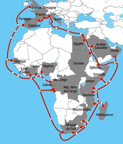 Ɓoggol ngol maa jokkondiroy Orop hirnaange e Fuɗnaange ɓadiiɗo kam e leyɗe 16 afriknaaje rewrude e geec Mediteraane, Maayo woɗeewo, jookdu Aden, tufnde Afrik wonnde e geec iñnjeejo haa yettoo sorfundu Bonne-Espérance, roondtoo geec Atalantik haa yettoo Biritaan-Mawɗo. So ngol gasii feewneede maa ngol newnu kuunugol 4G e 5G, kam e internet waamo toowngo. So tawii kay leyɗeele jokkondiraaɗe ɗee, kuutoriima ɗum no haanirta nii, sibu eɗen nganndi, yeru tan e Muritani, hey kattanɗe ɓoggol ACE goodngol hannde ngol ine ngoɗɗi huutoreede e naftoreede, ko ɗuum nii tagi haa hannde leydi ndii ruuddata ko e 3G leefɗo boom. Haralleeɓe ɓee kollitii boom ko yoga e leyɗe Afrik kuutortoo heen ko hedde joyaɓal (20%) kattanɗe ɗiin ɓoggi. Ɗuum woni leyɗe ɗee naftortaako no feewi kattanɗe goodɗe ɗee.