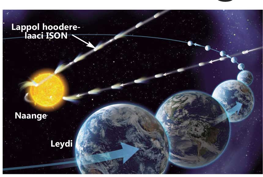 Hoodere-laaci ISON e naange ndokkondiriino aadi ñalnde 28 noowammbar 2013. Ndee hoodere laaci noon ummii ko to woɗɗi saɗne, sibu ko to ruulde wiyeteende Oort, nde nganndu-ɗaa hakkunde mum e men ina wona hitaande-annoore (10 000 miliyaar kiloomeeteer), ɗum firti ko so a torsii ɗoo ampul maa, annoore mum ina doga hitaande (balɗe 365) nde yettoo toon. Ko goonga noon, ISON wirtoto naange tan, wirtungo woɗɗungo, sibu oon sahaa ko ina ɓura miliyoŋ kiloomeeteer ina ɓilii hakkunde majje (1,1 miliyoŋ kiloomeeteer), kono enen kam mbiyaten ko nde ɓalliima naange no feewi, sibu kayre ɓuri en ɓadaade ɗum laabi 150. Ko ɗum waɗi nde rewata ko e nokku mo nguleeki mum waawi ɓurde 2 700°C (100°C fasnata ndiyam) !
