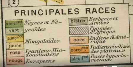 So en ƴeewii kartal leƴƴi ittangal he atalas (deftere karte) gooto peewnaaɗo he hitaande 1907, mo ganndoleydo biyeteeɗo Vidal de La Blache wallifii, eɗen teskoo heen tolnondiral hakkunde ɗaŋe e edda ɓalndu, ɗaŋre fof e leñol mum. Eɗen teskoo ine winndaa heen wonde ɗaŋre Afrik ndee yantude e huunde e Asi ko ɗaŋre ɓaleeɓe e monngol en (« nègres et négroides»),« mongoloide »), ɗaŋre Orop, ko oropnaaɓe e ɗaŋre Amerik hirnaange e huunde e Amerik worgo e Oseyani, ko ɗaŋre berbeer en e aarabeeɓe, dooɓaaɓe Afrik e eñnjee en (pygmées d’afrique, indiens d’amérique), e leƴƴi rewo leydi ceɓɓitiiɗo sara wuddu leydi rewo ceɓɓitiiɗo. Ndaa miliyoŋaaji, miliyoŋaaji sukaaɓe faraysenaaɓe (e afriknaaɓe) njiyii ngalɗoo kartal, haa e feccere teeminannde 19ɓiire. Atalas Allemaañ goɗɗo e oon yonta gooto, ko hono ɗuum hollittunoo.