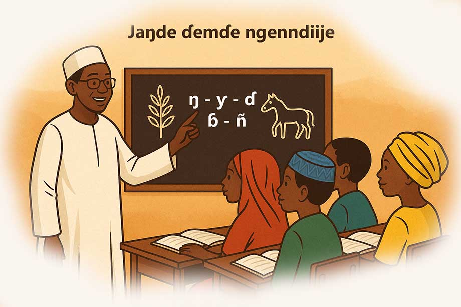 – To kuulal 55 (ko yowitii he jaŋde mawɓe), Jokkorde pelle pinal ine sakkita taƴre aroore ndee : « Jaŋde mawɓe waɗetee ko he nder ɗemɗe ngenndiije arab, pulaar, sooninke e wolof ».