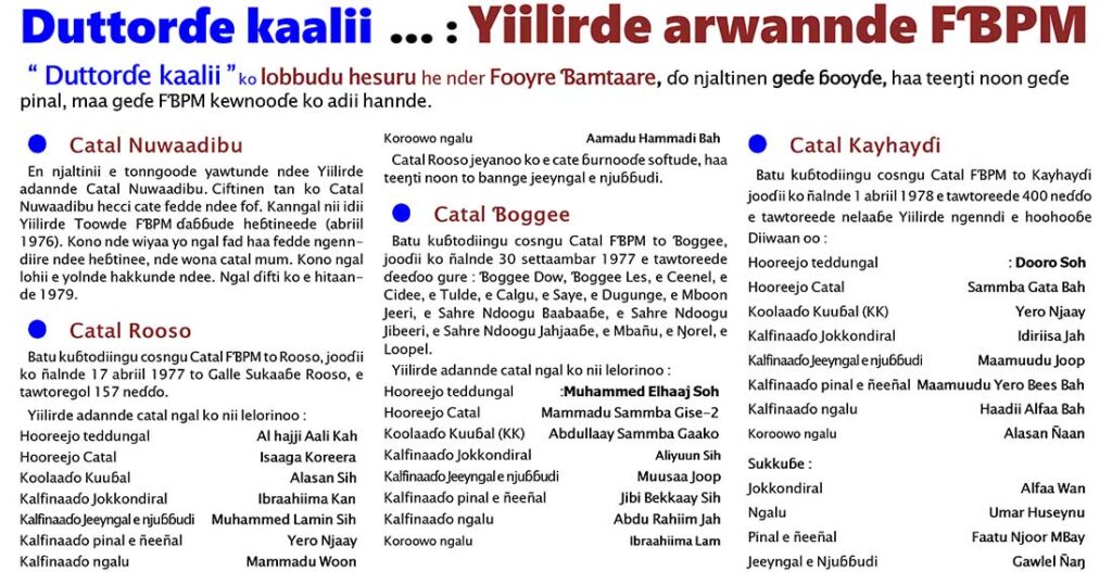 En njaltinii e tonngoode yawtunde ndee Yiilirde adannde Catal Nuwaadibu. Ciftinen tan ko Catal Nuwaadibu hecci cate fedde ndee fof. Kanngal nii idii Yiilirde Toowde FƁPM ɗaɓɓude heɓtineede (abriil 1976). Kono nde wiyaa yo ngal fad haa fedde ngenndiire ndee heɓtinee, nde wona catal mum. Kono ngal lohii e yolnde hakkunde ndee. Ngal ɗifti ko e hitaande 1979.