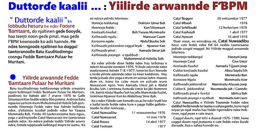 l Yiilirde arwannde Fedde Ɓamtaare Pulaar he Muritani