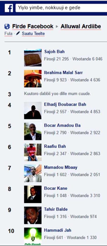 So Pulaar suɓaama yo jeye e wutteeji ngolɗoo laylaytol lollungol wonaa huunde haawniinde no feewi, sibu ngal jeyaa ko e ɗemɗe ɓurɗe mawnude e yaajde e nder Afrik, sibu ko famɗi fof 40 000 miliyoŋ neɗɗo ina kaala ngal, tee engal haalee ko famɗi fof e nder leyɗe Afrik 20. E nder ɓetirgal Calvet wonande ɗemɗe Afrik, pulaar woni hoore ɗemɗe Afriknaaje, sibu ko ngal nayaɓal caggal Engele, Farayse, e Arab. Yanti heen fulɓe ina cofti e nder internet haa teeŋti noon e facebook. Ɗum noon Facebook juumaani. So facebook waawii ɗisde ngal nii e nder hitaande wootere firo ko sabu coftal Goomu Firo Facebook e Pulaar.