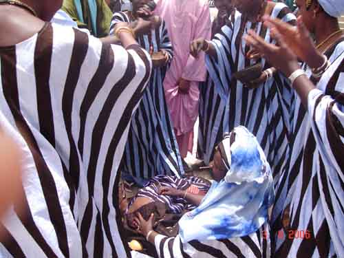 So debbo dammbiima haa o dammbitiima, fedde makko jiiɓa ɓakkere (jooni ko conndi farin heewi waɗeede), ɓe naata e wuro, eɓe njiyloo fedde gorko oo. Kala heen mo ɓe njiyi, ɓe muulat e muuɗum ɓakkere ndee. Ɓeen ne, ndidda ɓe, mo ɓe keɓtii kala ɓe njoftoo, walla ɓe piya. So ñalawma oo woɗɗi noon, ɓe ndenndina comci ɗii kala, ɓe tottee caabune, ɓe tiindoo maayo walla woyndu. Ɓe ñalla wuppude haa hiira, ɓe ndoontoo guppirɗe maɓɓe ɓe ngarta wuro. Tawa oon sahaa, e galle gorko ɗoo, ɓe kirsanaama, ɓe ndefanaama barmeeji gosi e teewu. No ɓe njettotoo to galle ɗoo tawat barmeeji ɗii ndeftaama. So ɓe njettiima, ɓe ndootoo guppirɗi maɓɓe damal galle, ɓe ndoora fijirde: “Yaay addu ko ndefanno-ɗaa cukalel! Yaay kay moɗii.” Lehe ndottee, leece mbertee, ɓe ɓadinee ɓe ñaama.