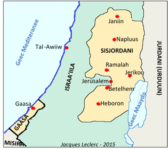 Ndeke, hakkunde Ciifol Gaasa e Sisjordani, ko Israayiila ɓilii ɗoon, leyɗe ɗee ɗiɗi njokkondiraani. Falastiinnaaɓe njogii ko laamɓe ɗiɗo haɓooɓe to Ciifol Gaasa e to Sisjordaani.