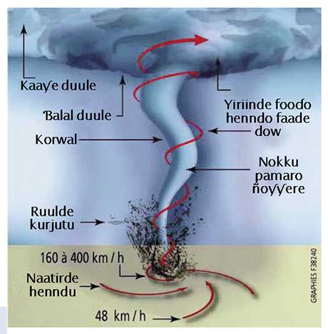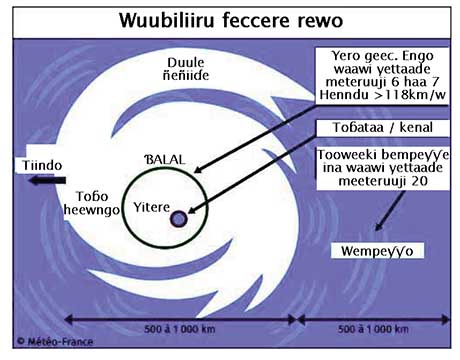 Woni e nokku taariiɗo yitere ndee ko duule mawɗe (kaaƴe) ɗe tooweeki mum waawi yettaade 12 haa 15 km. Ngalɗoo ‘’ɓalal’’ duule alaa ko ɓuri ɗum heewde bonannde : njaaweeki keneeli mayre ina mbaawi yettaade 300 km/w, tee toɓooji mum ko ɗuufeeji (yeru, en nder waktuuji 24 toɓo (ñalawma) to duunde Réunion caggal nde wuubiliiru rewi ɗoon, toɓii ko ina wona meeteruuji 2 ndiyam).*