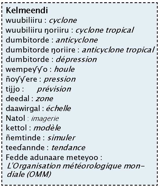 Fedde adunaare meteyoo (Organisation météorologique mondiale (OMM)) jokkondirta ndeenka kaa nder aduna hee. Fedde ndee toɗɗiima e kala heen deedal geec, Duɗal meteyoo diiwaniiwal karalleewal to bannge tijjo guubiliiji : Miami (wonande Atalantik rewo e Pasifik fuɗnaange-rewo); Tokiyoo (wonande Pasifik hirnaange-rewo); Honolulu (Pasifik hekkundeejo); New Delhi (wonande sorfundu Benngaal e geec Omaan); Nadi (wonande duuɗe Fidji, Pasifik hirnaange-worgo) ; Nokku Météo-France mo Saint Denis de La Réunion (wonande hirnaange-worgo geec iñnjeejo).