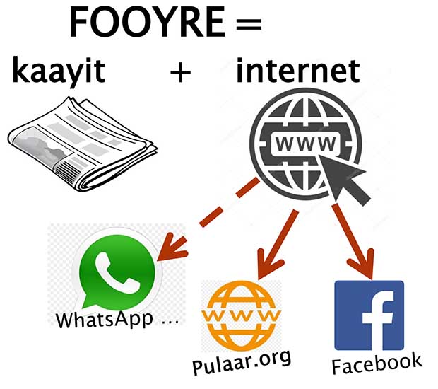 So wiyaama Fooyre tan noon, miijetee ko jaaynde kaayit ndee ; kono fooyre ko jaaynde kaayit ndee e lowre enternet ndee (https://pulaar.org), kam e hello mum facebook. Ɗum noon ko kaayit oo e kuutorɗe enternet ɗee.