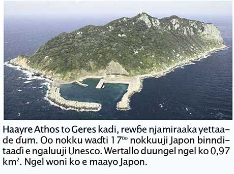 Duunde Okinoshima winnditaa ko e nokkuuji pinal ɓurɗi alɗude e winndere ndee. Nokku oo jeyaa ko e nokkuuji kormorɗi Japon, wonande dewal biyeteengal shinto, nokku ɗo rewɓe kaɗaa yettaade. Taarol duungel ngel ko kiloomeeteruuji 4 fat. Ko ñalnde 27 mee hitaande kala (ñalawma gooto) 200 gorko fat njamiraa naatde e nokku hee, caggal nde calliginii nder geec. Ko wonaa ɗuum hoɗi heen tan ko ceerno shinteejo (ceerno diine Shinto). Won terɗe e Goomu Unesco hee kolliti wonde kaɗgol rewɓe naatde e nokku hee ko paltoor. Kono ɓe kollitaa wonaa ngol ɗuum fuɗɗii, sibu Haayre Athos to Geres kadi, rewɓe njamiraaka yettaade ɗum. Oo nokku waɗti 17ɓo nokkuuji Japon binnditaaɗi e ngaluuji Unesco. Wertallo duungel ngel ko 0,97 km2. Ngel woni ko e maayo Japon.