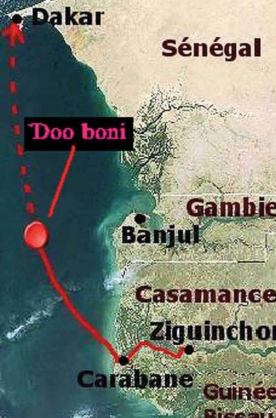 Laana « Le Joola » duñii tufnde Cikicoor ñalnde 26 Settaambur 2002 hedde tiisubaar (wkaituuji 13 e feƴtere). Ngol woni laawol makka tataɓol ko ka feewnitaa e ndeen. So tuugnaama e kaayitaaji, gaagaa « bagaas », aka waɗnoo fotde yimɓe 809 yoɓɓe njoldi mum en e yimɓe 52 soofaaji dognooɓe laana ka. Ka wefi maayo Kaasamaas haa ka yettii duunde Karabaan saanga wakituuji 3 kikiiɗe. Ko ina tolnoo e yimɓe 185 njoli ɗoon e makke fayde Ndakaaru. Jolngo e makka ɗo Karabaan ɗoo noon ina heewnoo caɗeele. Ngati ka alaa ɗoon tufnde ɗo ka joofi. Yimɓe njoldata e makka ko laaɗe, mo woni fof jolda no weliraa, ɓe njoɓa ɓee njooɓataa.